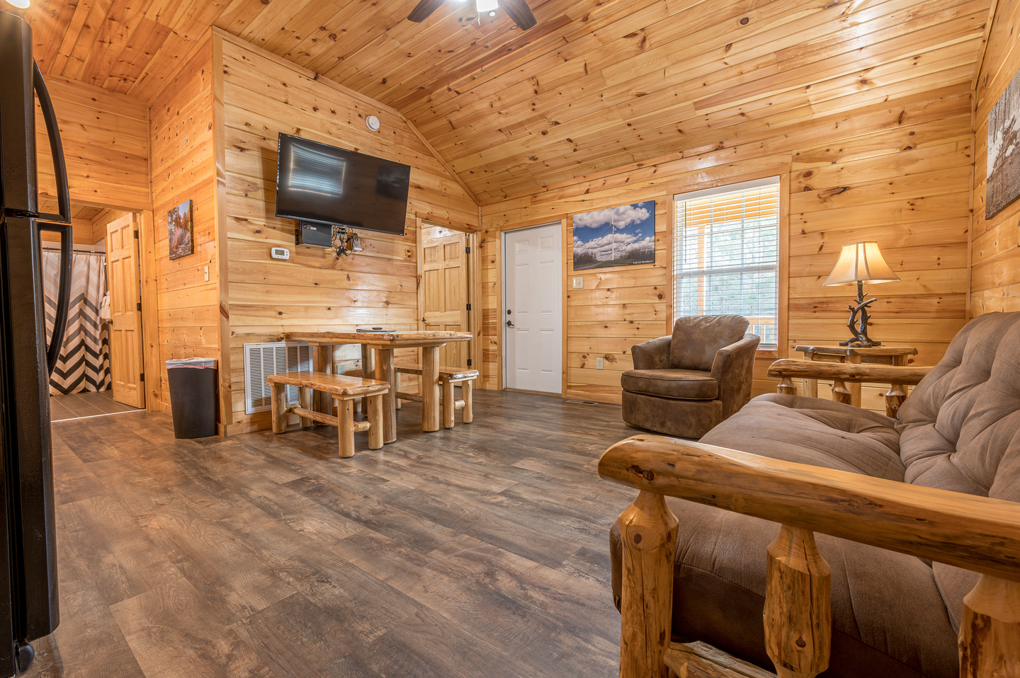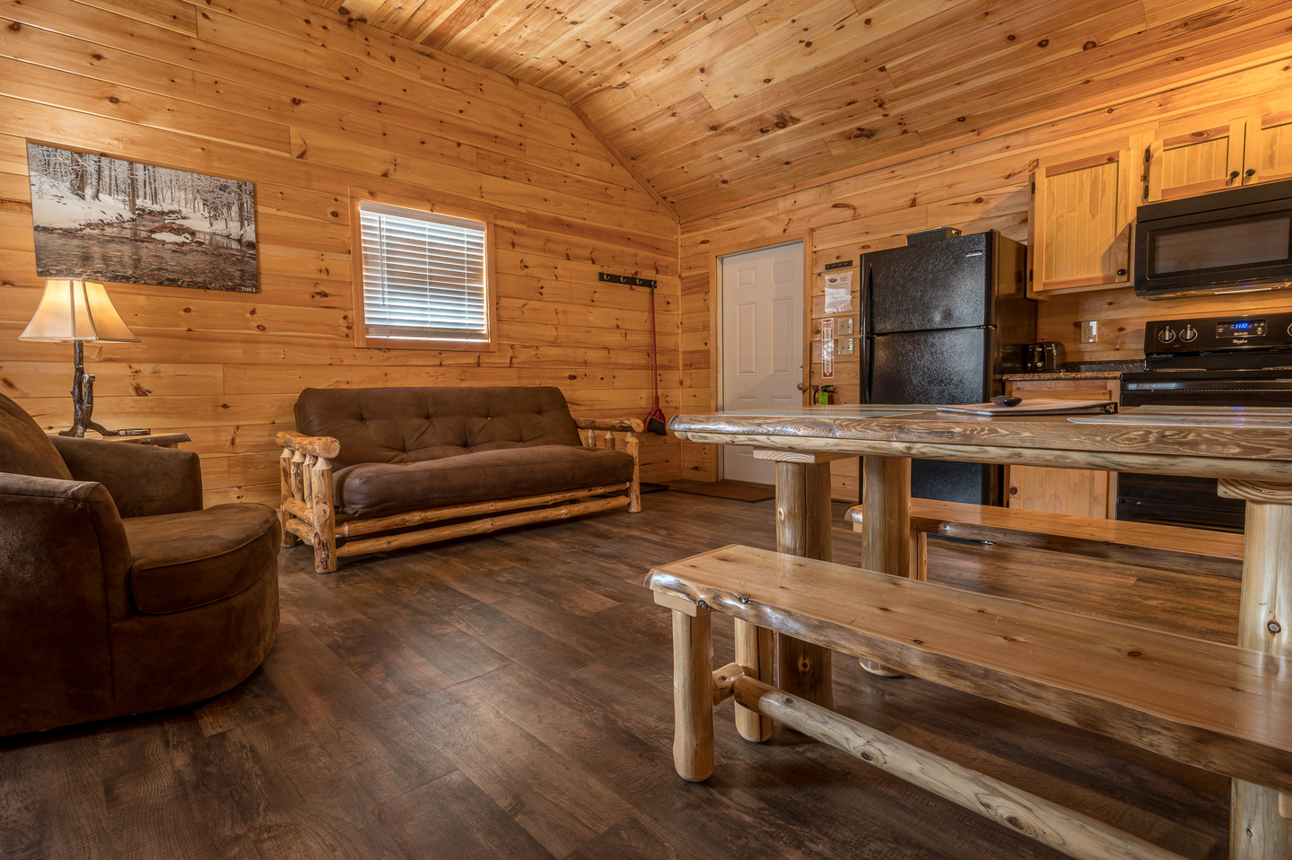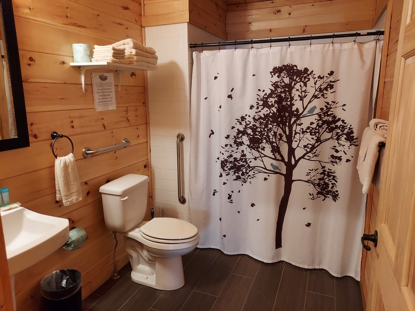 One Level – 1 Queen bed, full size futon in living area -Handicap accessible-