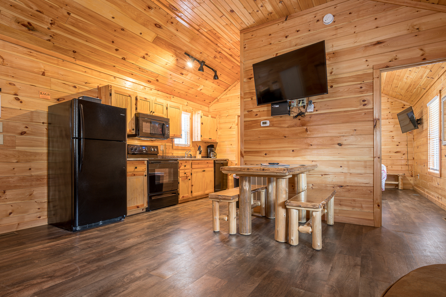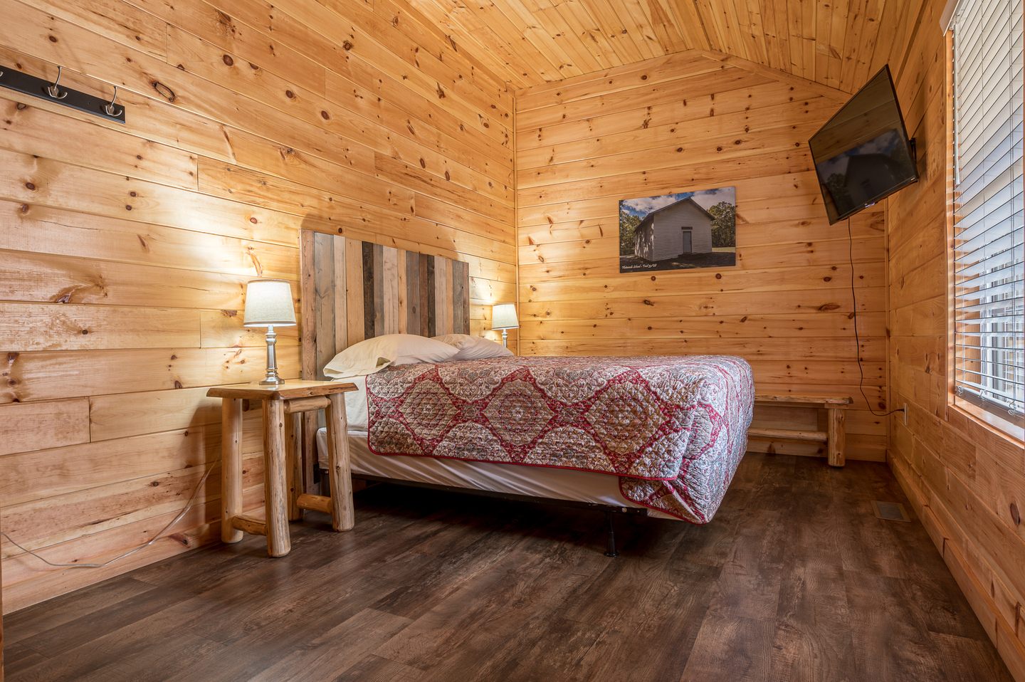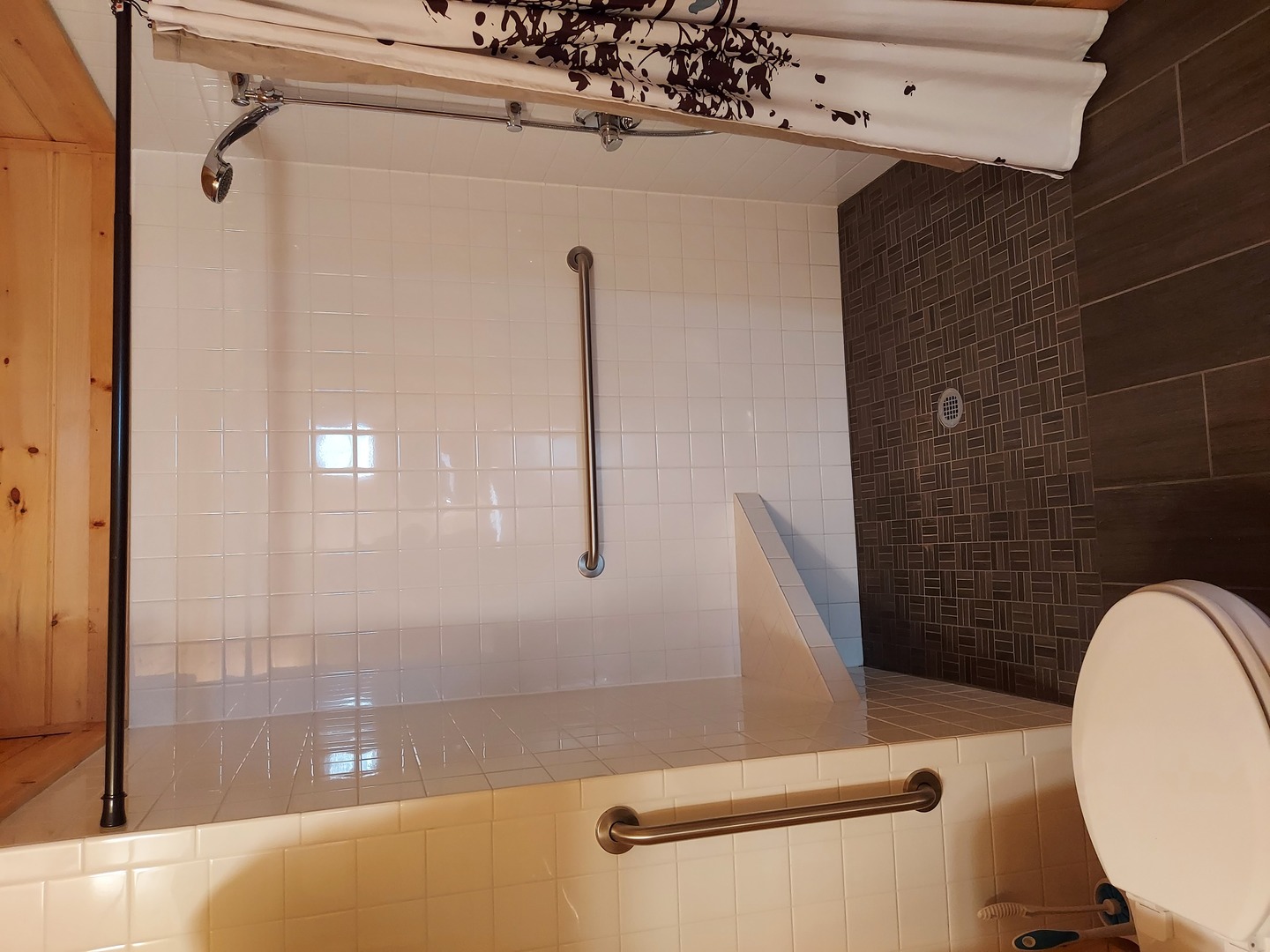 One Level – 1 Queen bed, full size futon in living area -Handicap accessible-